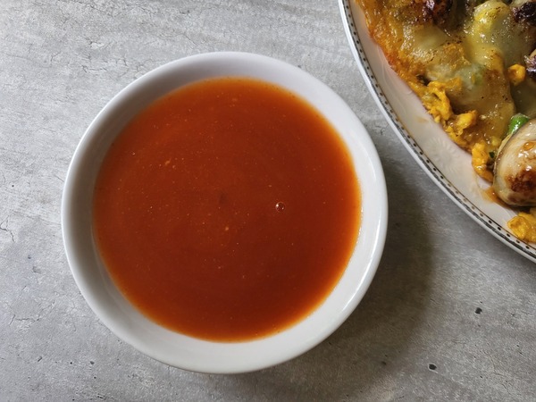 將甜辣醬汁所有材料(太白粉水除外)都下鍋,開中小火慢慢加熱,期間需不斷攪拌,確保味噌完全溶解且糖分不會焦化,煮沸後試味道(依喜好做調整,北部風味通常醬油膏較多(鹹香),南部則會增加番茄醬比例(偏甜紅)),最後慢慢倒入太白粉水(或糯米粉水),邊倒邊攪拌,直到醬汁呈現濃稠且帶有光澤的狀態即可起鍋。(醬汁放涼後會稍微變更稠)。