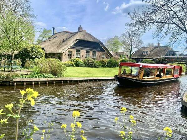 荷蘭 羊角村 Giethoorn|開船漫遊的童話水鄉 第一次來羊角村,真的會懷疑自己是不是走進童話書裡。 整個村莊幾乎沒有馬路,取而代之的是一條條運河,小船就是這裡最日常的交通工具。 我們選擇自己開電動船遊小鎮,操作其實很簡單,慢慢催油門就能前進。 船滑過水面時幾乎沒有聲音,只聽得到水波輕輕拍打船身,整個人瞬間安靜下來。 沿著運河前進,兩旁是茅草屋、整理得很漂亮的花園,偶爾還要小心會船、禮讓對向的遊客, 有點像在水上「開車」,卻一點壓力都沒有,反而覺得很好玩。 有些房子前面直接就是私人碼頭,坐在船上看風景,會忍不住想像如果住在這裡, 每天出門就是搭船,生活節奏一定慢得很奢侈。 下船後再沿著步道散步、過小木橋、拍照,整個羊角村怎麼拍都像明信片。 難怪會被稱為「北方威尼斯」,但這裡更多的是鄉村的寧靜與純粹。 如果行程允許,真的很推薦一定要體驗一次開船遊羊角村, 在水面上慢慢前進的那段時間,會成為旅程裡最放鬆的一段回憶。