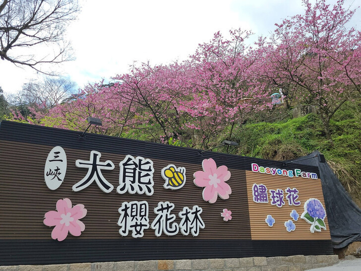 新北賞櫻景點推薦:三峽大熊櫻花林「三峽大熊櫻花林」地點位於新北市三峽山區,占地約5公頃,是一座私人櫻花園,每年1~3月是櫻花季、3~5月是繡球花季,花季時間皆有開放民眾購票入園賞花。整片山丘種植超過4000棵櫻花樹,共有三色寒櫻、香水櫻、富士吉野櫻、小富士、福爾摩沙櫻、八重櫻、千島櫻等,不同品種的櫻花會接力綻放,因此這裡的櫻花季特別長,而且櫻花季期間沒有公休,就連除夕、過年期間都有開放!另一大優勢,就是園區幾乎都是上坡路段,視覺上可以讓櫻花顯得更密集,盛開時可以拍出滿山滿谷的櫻花海,非常浪漫,建議可安排停留1~2小時參觀。