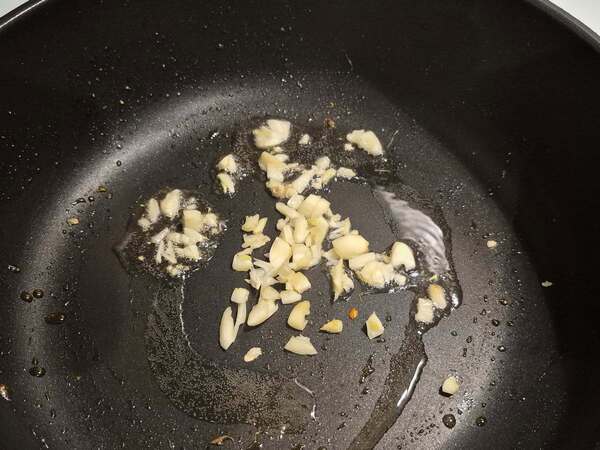 沿用原鍋,加入一大匙食用油爆香蒜末。