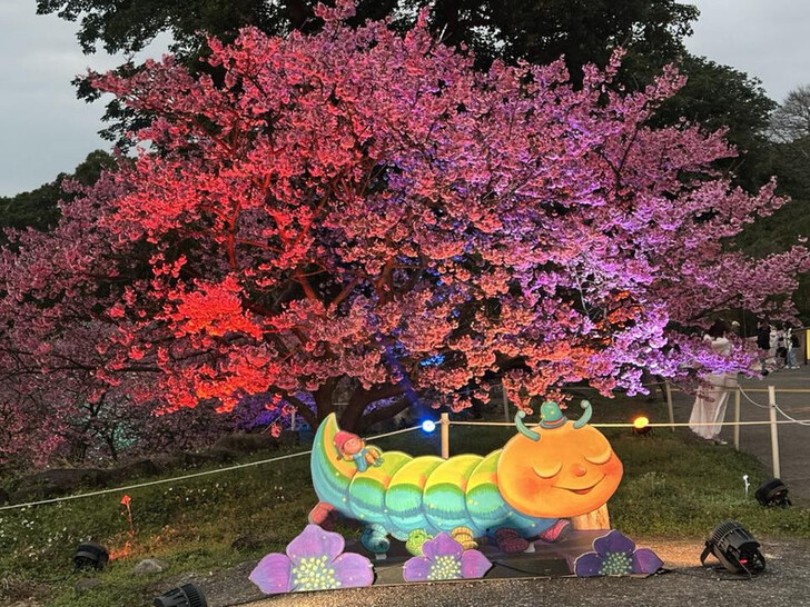 ▼連地上的燈射燈都是櫻花的形狀,太有巧思了