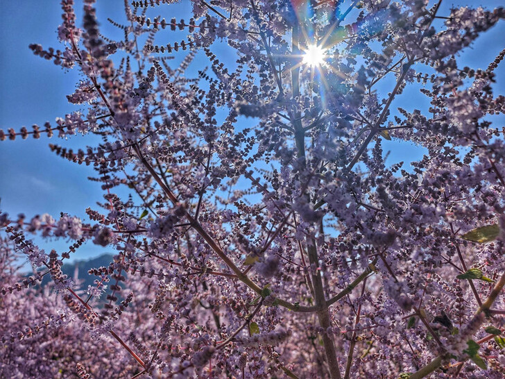 位於南投國姓山區的九份二山九尖茶廠,近日迎來麝香木花季,整片山坡披上粉紫色外衣,打破過往以綠色森林與白色梅花為主的山林印象,為當地熱門賞梅路線增添全新風貌。花季自2月一路綻放至4月,目前已進入前段盛開期,壯觀花海吸引不少遊客專程上山探訪。
