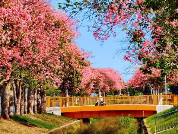 虎尾巧遇美人樹綻放美麗 免費景點!2公里虎尾夢幻粉紅大道再現,美人樹花海+橘色美人橋水面倒影,抓住今年最後的粉紅秘境吧!可惜花期過啦!明年再來喔。 風一吹,粉色花瓣落下的瞬間,好像連空氣都溫柔了。雲林...