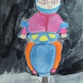我喜歡那一幅一群樹的舞會的畫作。挺有想像力的喔!背景是黑色,月亮是白色,給人一種魔幻的fu。。。^^