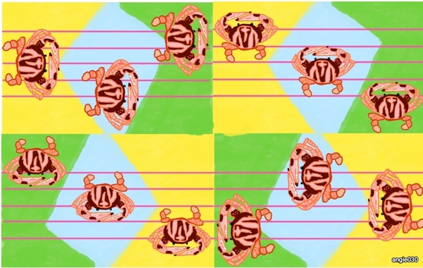 一張圖前後左右轉一轉,看見三隻螃蟹在比賽,