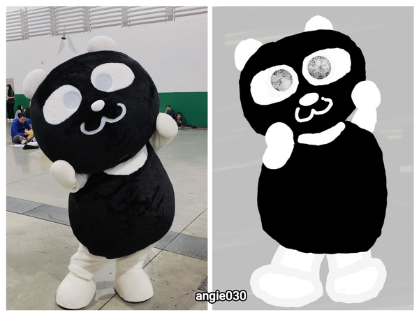 大型玩偶卡哇伊,裡面藏著人佇立,