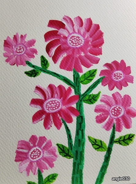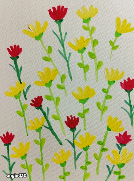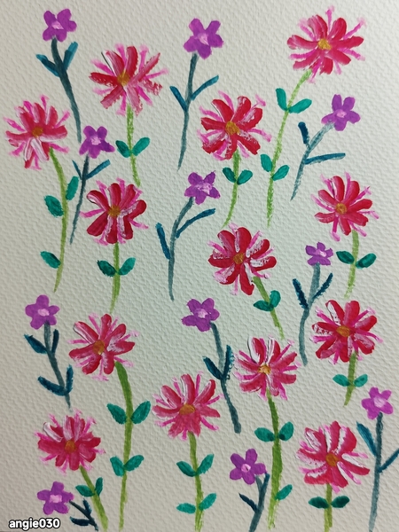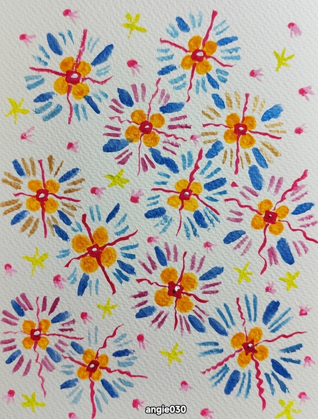 圓圈點狀花卉底,一幅水彩待乾劑,