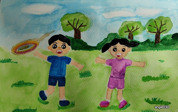 孩童追逐趣,笑聲傳耳裡