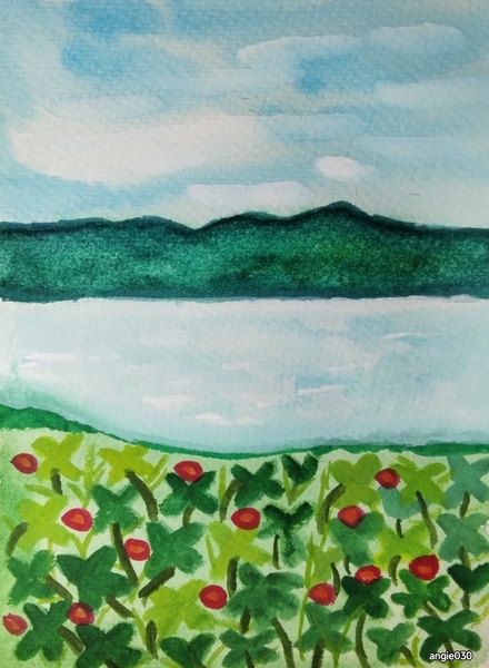 靜靜的凝視眼前 用雙眸搜尋這一景一物 你不用設想太多,激盪腦力 這幅畫裡只有你自己的心情 用心感受與聆聽心語 藍天白雲一團和氣 青山的聳立,河水流動的聲音 野草野花充滿生機 讓人沉浸在畫裡,忘記憂...