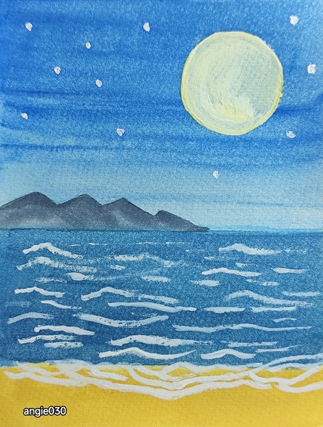 黃色蛋黃,完美帶點缺陷,卻格外亮眼 漸層藍美的自然,注視充滿喜悅 遠山隔絕兩個海平面,欲言又止 沙灘層層浪花奔放,暫留又回海的懷裡 寧靜、柔光、閃爍、聲浪 這片海,讓人愛上 angie030 11...