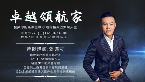 我們邀請你一起成為生命的【卓越領航家】教你如何發揮你的無限主導力,朝向極致的繁榮人生。