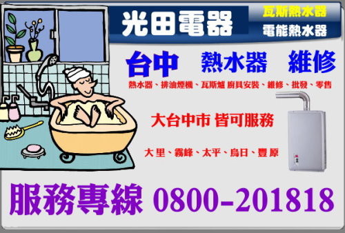 台中熱水器維修修理-大里.太平.台中縣市全區服務站0800-201818 台中市北屯區-台中熱水