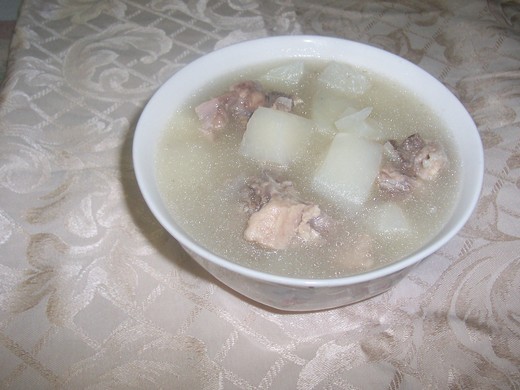 7. 排骨川湯放入湯鍋中,大火煮滾後關小火續煮20分鐘,再加入另一半切塊的大頭菜,續煮約十分鐘,直到筷子能穿透切塊大頭菜為止,後加入適量鹽巴調味,就完成了大頭菜3吃的美味料理。