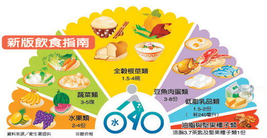 衛生署公布新版每日飲食指南,以扇形圖取代已有十多年歷史的梅花圖。