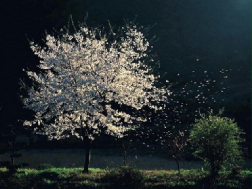 就在這晚我看見白色的櫻花像雪一樣再我面前飄落