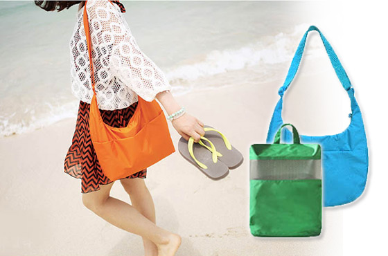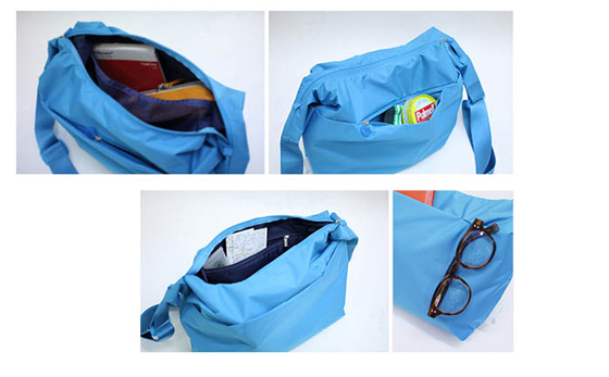 亮麗素面的斜背包,有分內外袋設計,能收納各式各樣小物,表面防水不濕重,晴天、雨天、外出或海邊戲水都方便。