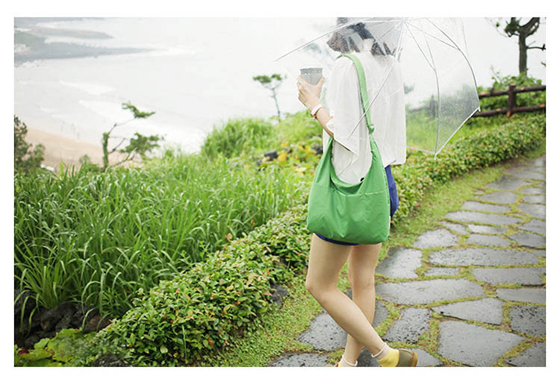 ●亮麗素面斜背包,晴天、雨天都合適使用