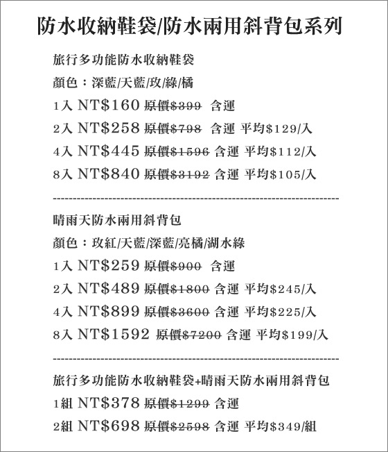 前幾天看到旅行多功能防水收納鞋袋/晴雨天防水兩用斜背包覺得還不錯