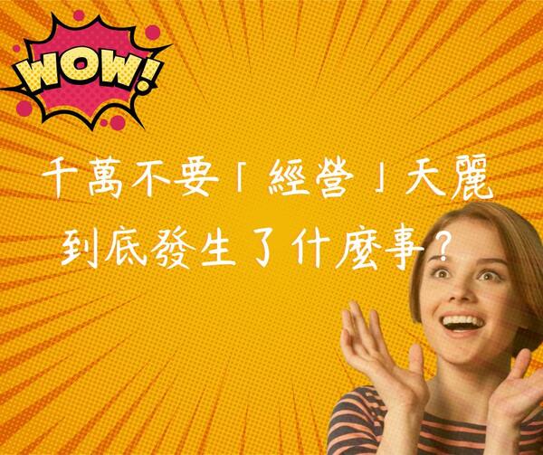其實都不是啦~我這篇想和你分享的是不要用「經營」這二個字去看待天麗,也不要叫人來「經營」天麗,為什麼??因為通常人們聽到「經營」二字,都會有壓力,因為你要叫他做自己沒做過的事情,要讓對方離開舒適圈,去到新的領域,心裡就會抗拒!