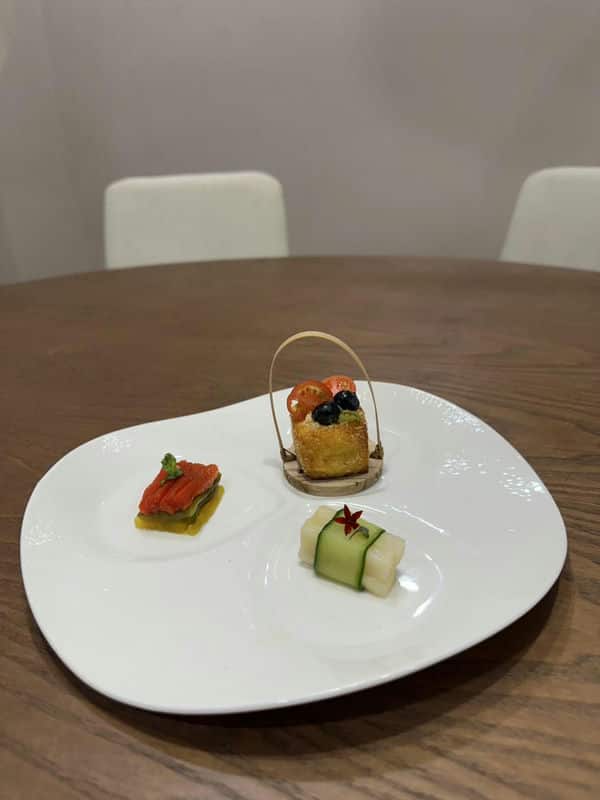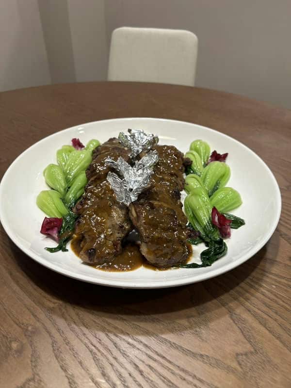 隨著一道道精緻的客製化桌菜上桌,空氣中的尷尬也慢慢被食物的香氣取代。每一道菜都像是藝術品,從擺盤到口味都恰到好處,不會過於搶戲,卻又能讓人感受到年節的豐盛。他們特製的烏魚子捲餅,清爽又不失年味;溫燉的雞湯暖心暖胃,讓大家在寒冷的除夕夜感到格外溫暖。在這樣的環境下,我引導他們開始了對話,餐桌上的美食似乎也成了無聲的催化劑,讓平日難以啟齒的話語,在享受美味的同時,自然而然地流淌出來。