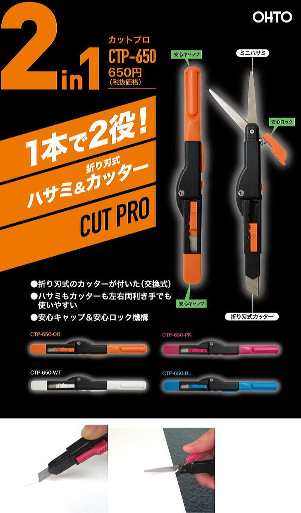 雙11特惠活動,搶到賺到:【OHTO】CTP-650-WT 2in1雙刀組-剪刀+美工刀(黑白雙色)