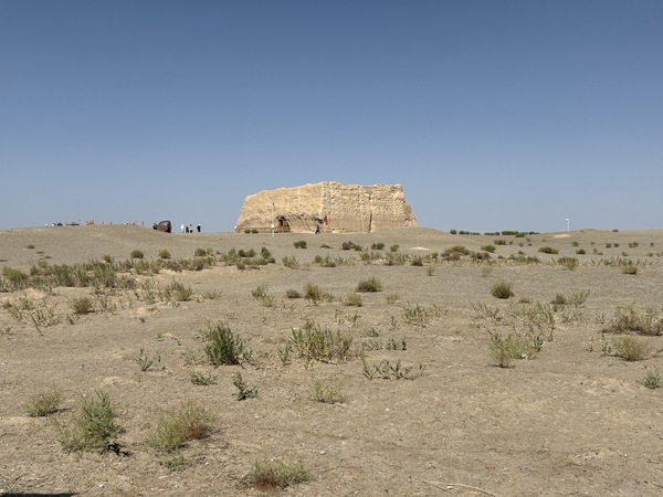 从敦煌继续西行七十公里可至阳关。敦煌离玉门关则有九十公里。由于未能确定可靠的交通工具,阳关行程未卜。至于玉门关,AI告诉我:路远且有潜在危险!的确,从敦煌到阳关、玉门关,要经过类似无人区的荒漠。一位出租车司机甚至告诉我:那地方前不着村后不着店,你可能困在那里回不来!正值可怕的炎热季节,我很挣扎,几乎要放弃。所幸,内地亲戚及时查询到了一班专跑敦煌和阳关玉门关的可靠汽车。就这样,暌违几十年,我宿命般地又一次来到显得十分老式的公共汽车站。开车领队的是一位经验丰富的司机,五十多岁,知识渊博,十分儒雅。