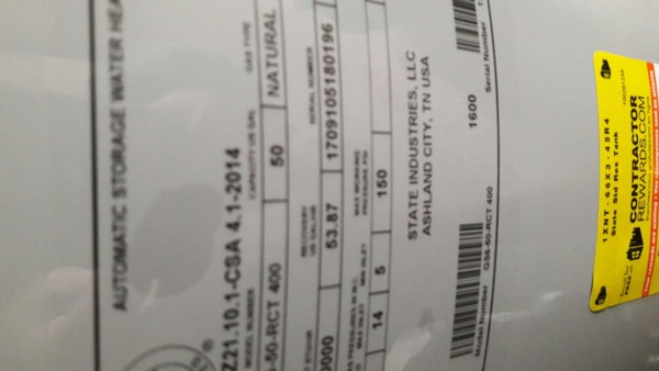 嘉義市西區鄭先生經營美髮院.裝設2台瓦斯熱水器.長期以來.受客戶的報怨.忽冷忽熱.很不舒服.透過室內設計師的推薦建議裝美國state製造廠原裝進口電能/瓦斯熱水爐.G-50X2(如上圖.03/03/2017.美國製造日期及條碼.QRCO.6年保固).其實美髮院競爭除了要有技術外最重要的聽客人的感受.就像育軒實業有限公司尊重客戶的選擇權一樣8/21早上10:30施工完成試水.附上原文及中文保固書.保障您的權益.