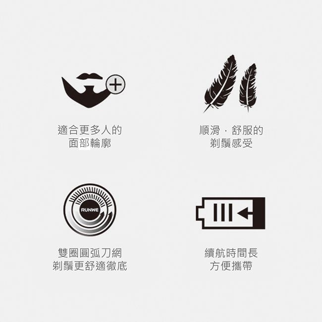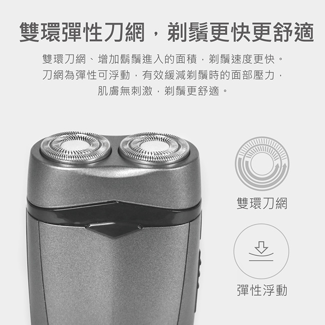 ◎雙環極速刀網+銳利鋼刀,刮鬍乾淨俐落。