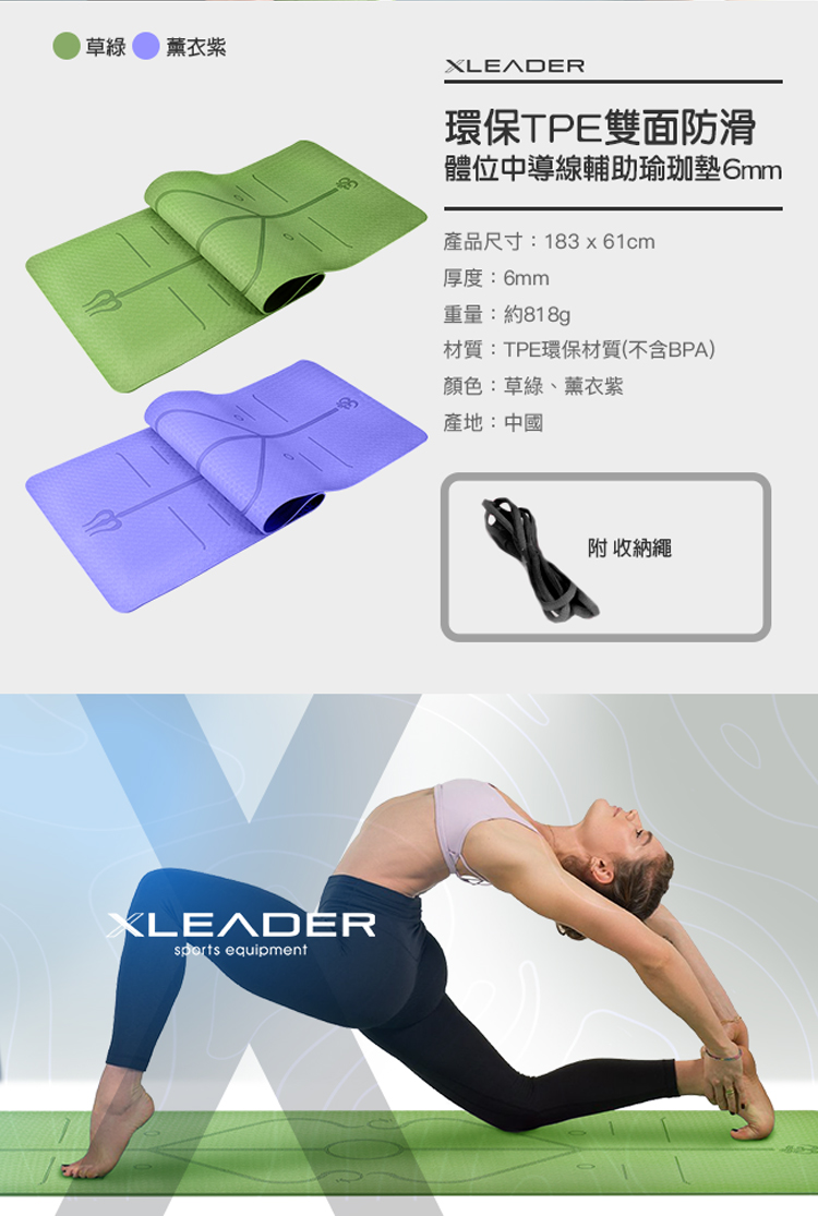 一起來看看這款【Leader X】環保TPE雙面防滑體位中導線瑜珈墊6mm 附收納繩 經典版 2入組(2色任選)吧!!!