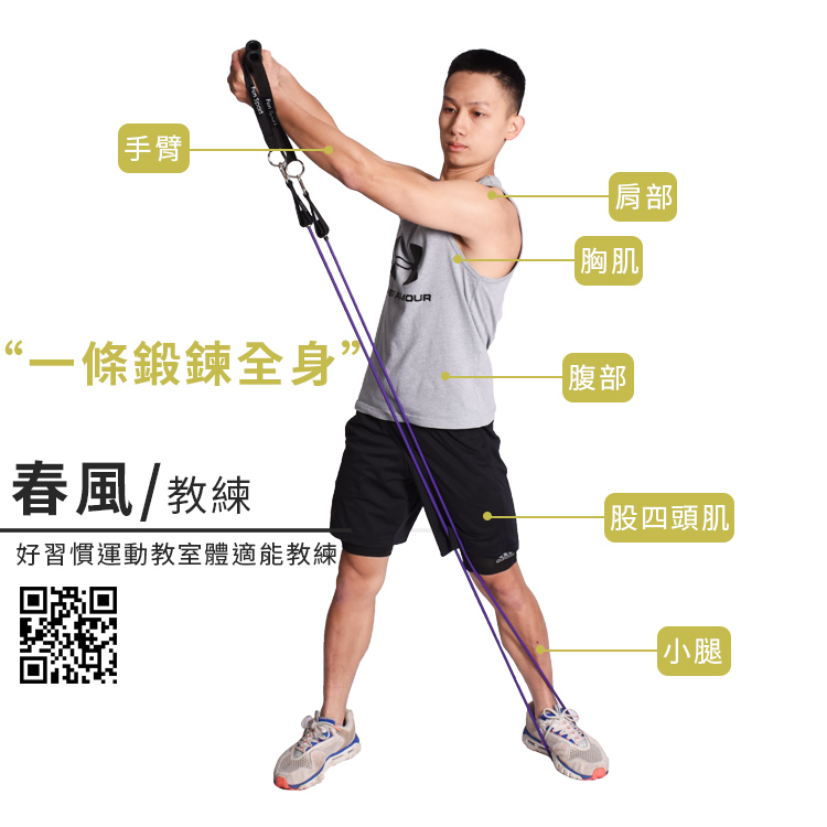 *屬於全身性運動,可以搭配彈力繩來鍛鍊全身的肌肉群