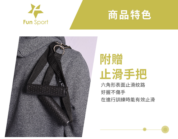 最近我們家在momo挑的這一款【Fun Sport】凱特力-超勁能彈力繩-肌戰組-含握把1對+門扣+集力套+4拉力繩(彈力繩 拉力繩)就是非常大推啊!