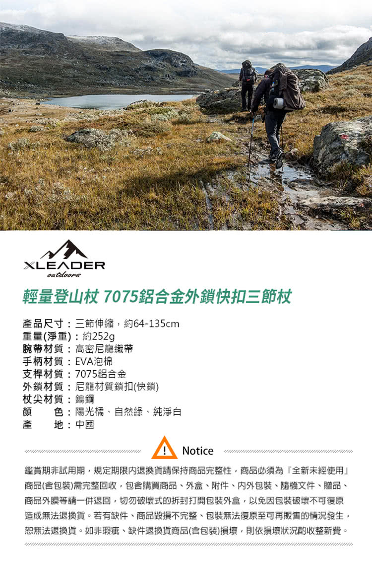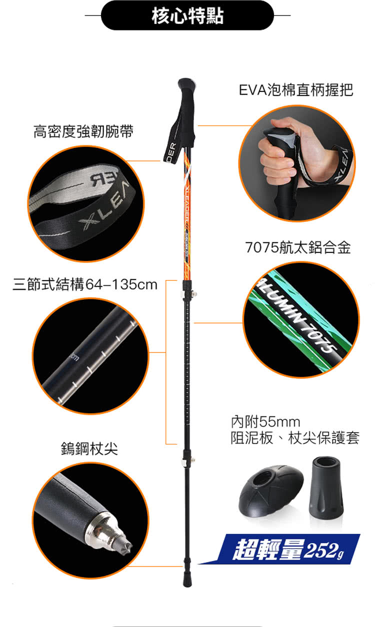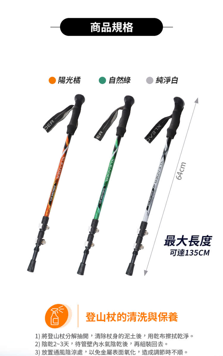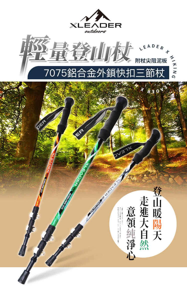 一起來看看這款【Leader X】Hiking輕量登山杖 7075鋁合金外鎖快扣三節杖 附杖尖阻泥板(超值二入組)吧!!!