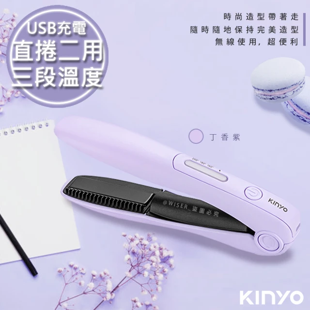 【KINYO】充電無線式整髮器直捲髮造型夾隨時換造型-馬卡龍紫色2入組(KHS-3101)大家可以參考看看