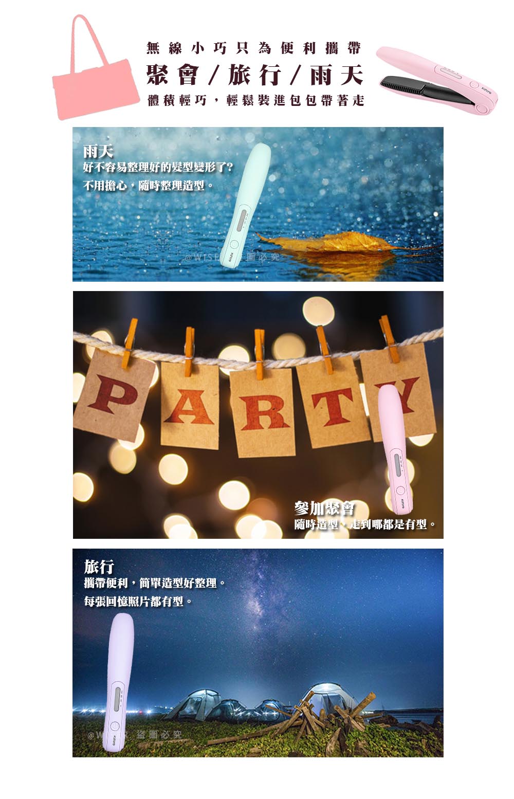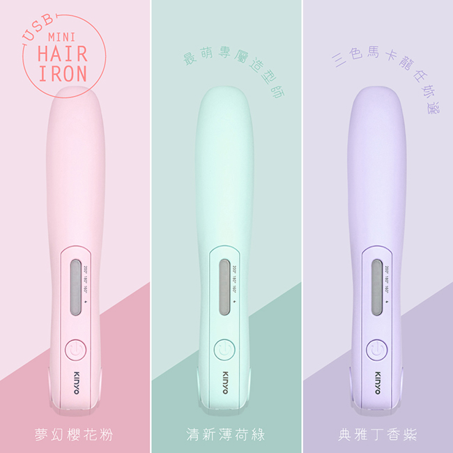 【KINYO】充電無線式整髮器直捲髮造型夾(KHS-3101)隨時換造型★強大:飄逸直髮/唯美捲髮/自然內彎/空氣瀏海 ★方便:無線使用隨時隨地變換造型 ★貼心:溫度顯示三段調節 ★可愛:馬卡龍三色,造型時尚