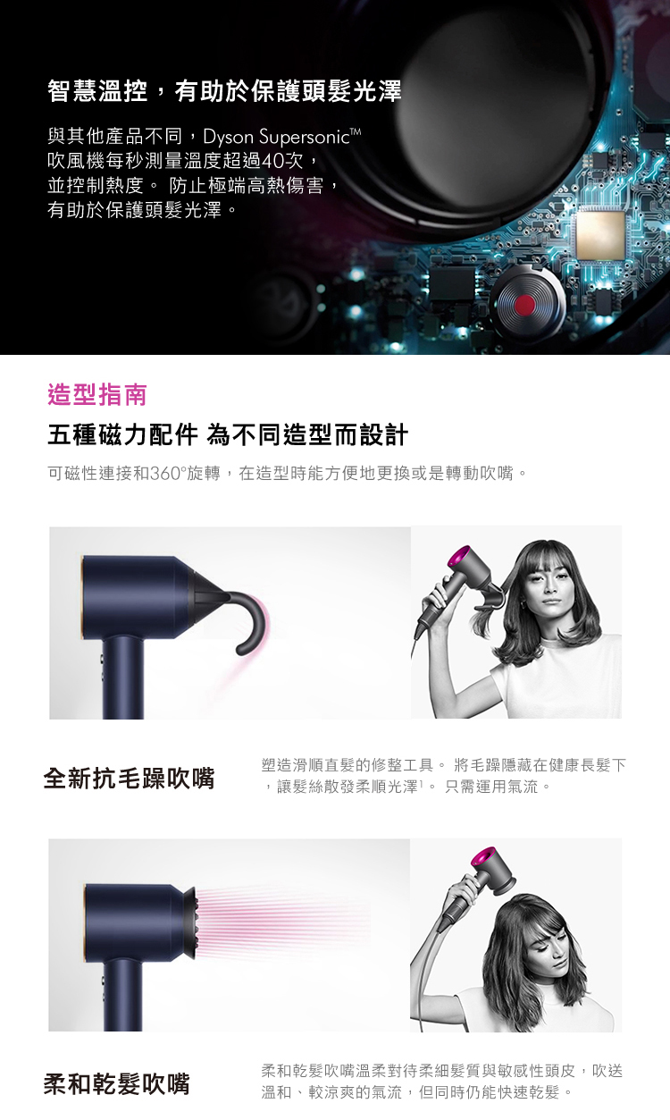 搭配智慧溫控科技,有助於保護頭髮的天然光澤