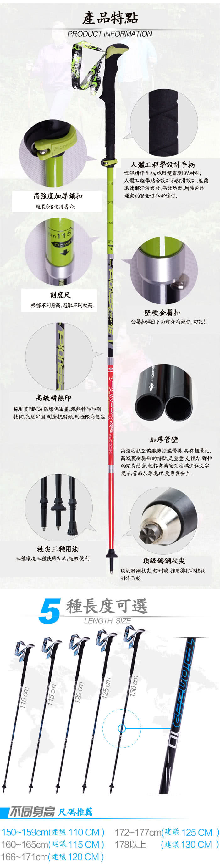 一起來看看這款【PUSH! 戶外休閒登山用品】頂級碳纖維3SL第8代鎖緊系統五節折疊式登山杖(1入 P73)吧!!!