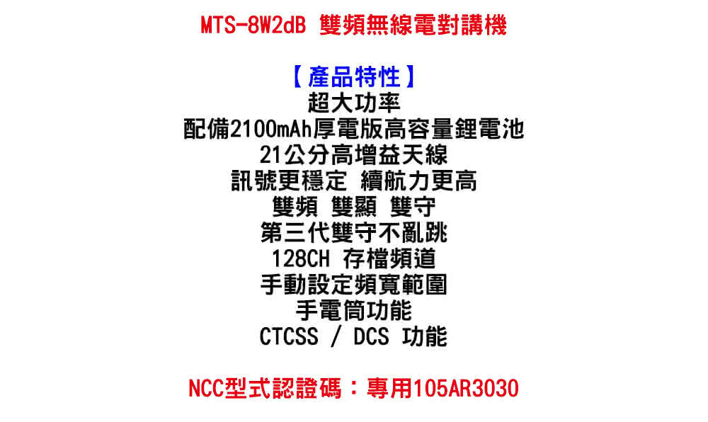 PTT鄉民【MTS】8W2dB 大功率 雙頻 雙顯雙待 高容量鋰電池 高增益天線無線電對講機限量,團購,限時,週年慶,禮物,優惠,【MTS】8W2dB 大功率 雙頻 雙顯雙待 高容量鋰電池 高增益天線無線電對講機特價,開箱,比價,活動,好評,推薦