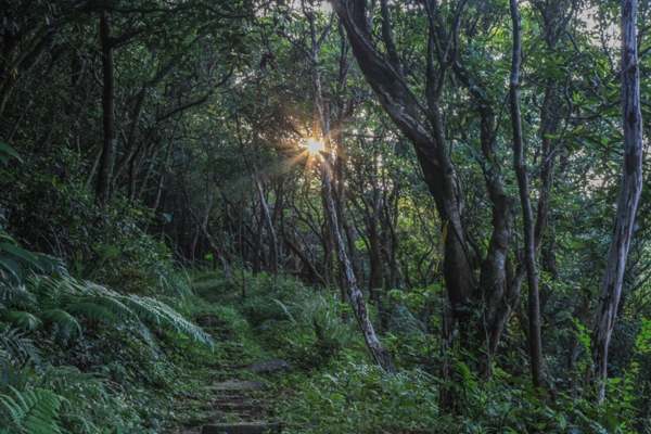 雞母嶺穀道,貢寮、澳底、文秀坑、雞母嶺往來金瓜石的山路。黃昏西邊的夕陽,從這裡可以看到臺北市總統府大門的憲兵(當然是玩笑話,只是告訴你這方向是西邊,是進城的山路)。