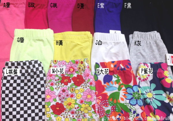 【F106】F106及膝內搭褲 LBB 純綿 打底 安全褲 即膝 彈性 貼身褲 尺寸~86.90.95.100.110.120.130.140.150 款式~如圖!A蜜.B玫.C桃.D棗.E紫.F黑.G螢.H黃.J白.K灰.L棋盤.M小花.N大花.P藍花 單價~一件66元 |