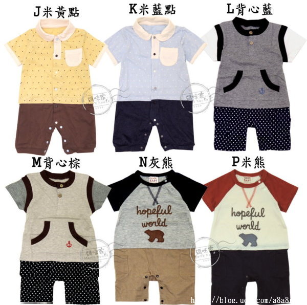 【AB060】AB60紳士平角衣 今夏新款 假2件式外出 連身衣 爬服 平角衣 兔裝 尺寸~70.80.90.95 款式∼如圖款!(請先確定是否有存貨再購買!) 單價∼一件250元 |