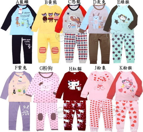 【S094】S94薄綿套裝 長袖 套裝 睡衣 家居服 休閒服 冷氣房適穿~ 尺寸~90.100.110.120.130.140 款式~如圖款!A藍鱷、B黃熊、C恐龍、D灰兔、E綠猴、F紫兔、G粉狗、H紅貓、J粉象、K粉猴、L彩龍(請先確認您需要的尺寸款式後再下標!) 單價~一套(衣+褲)$160元 |