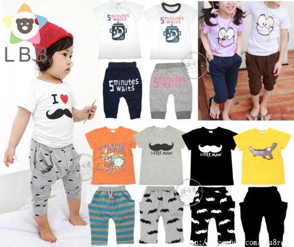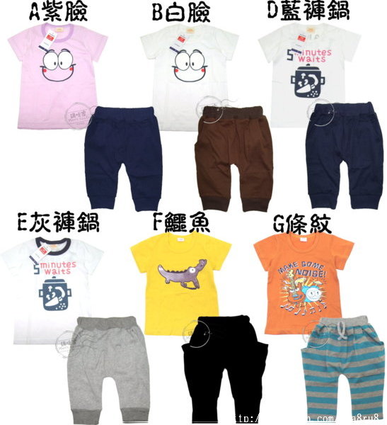 【AB032】AB32飛鼠褲套裝 LBB 短袖 笑臉 印花 休閒 上衣 T恤+飛鼠褲 套裝~ 尺寸~86.90.100.110.120.130.140 款式~如圖款!A紫臉、B白臉、D藍褲鍋、E灰褲鍋、F鱷魚、G條紋、H灰鬍子、J黑鬍子、K白鬍子 單價~一組2件(T恤+飛鼠褲)~180元 |