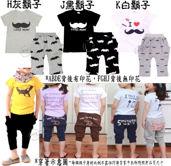 ◆A紫臉、B白臉、D藍褲鍋、E灰褲鍋背後有印花設計! ◆百搭實穿, 夏天每個小朋友都要有的款式,休閒運動舒適, 值得擁有,不要錯過啦! ◆印花休閒風設計, 可單穿也可分開穿,超好搭配! ◆LBB製版大陸代工! |