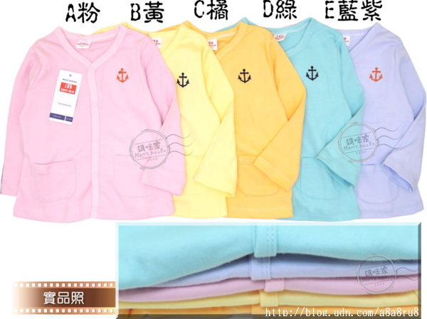 【AD019】AD19船錨外搭 LBB 船錨繡花 前開 前排釦 口袋 小外套 外搭 四季適穿 尺寸~86.90.95.100 款式~如圖色/A粉、B黃、C橘、D綠、E藍紫 售價~1件99元 |
