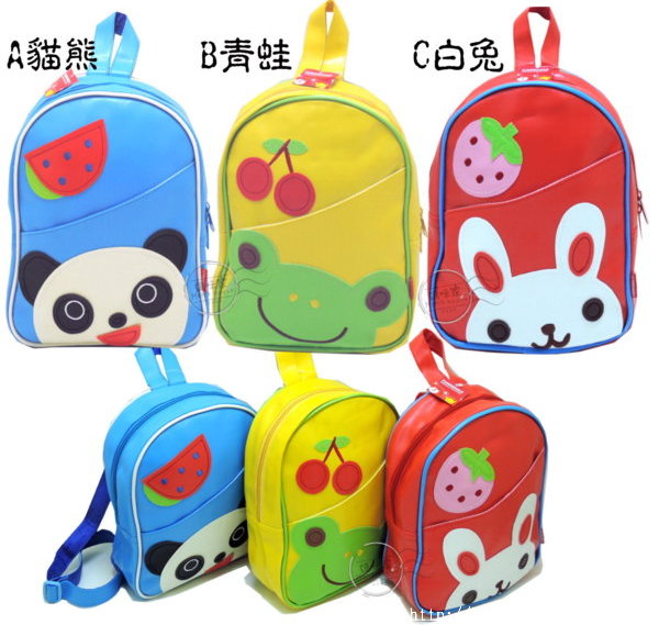 【H033】H33貼布後背包 手提 動物 水果 貼布 雙肩包 後揹包~肩帶可調整 款式~如圖款/A貓熊、B青蛙、C白兔 單價~180元 |