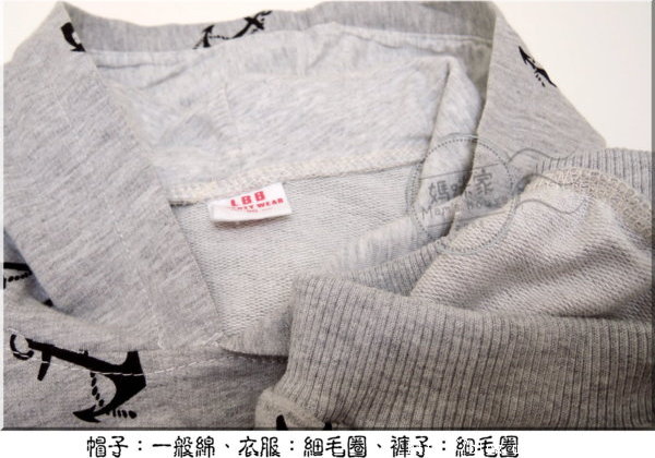 【AA032】AA32船錨連帽套裝 毛巾圈 細毛圈 中厚綿 休閒 含帽 T恤 上衣+長褲 2件組~ 尺寸~90.100.110.120.130.140 款式~單一款式! 單價~一套2件(含帽上衣+褲子)~199元 |