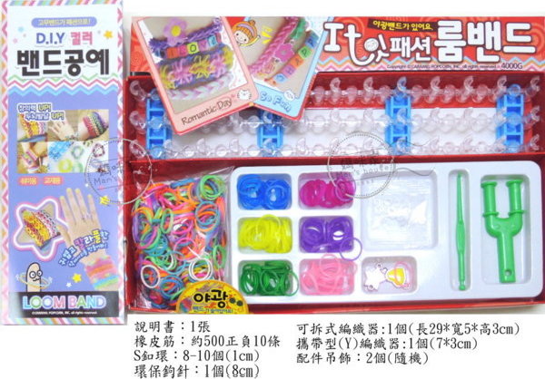 ◆材質~橡皮/壓克力/塑膠(難免會有氧化及消耗損傷、使用後均無法退換貨) ◆環保鉤針為塑膠材質,難免因拉扯、用力不當斷裂,建議可以鐵製毛線鉤針替代http://www.mams.com.tw/content.php?cn=item&search=1&itemName=%E5%8B%BE%E9%87%9D ◆多種組合方式橡皮圈可隨心編織出多種手環、戒指、項鍊、髮飾、配飾、動物造型。。。等,益智DIY讓大小朋友都愛不釋手發揮想像力的手工創意玩具。 ◆色彩鲜艷橡皮筋做出不同的可愛動物造型玩偶可當擺飾,增加童年樂趣,可自行至YOUTUBE教學網站搜尋"彩虹編織 教學"! |