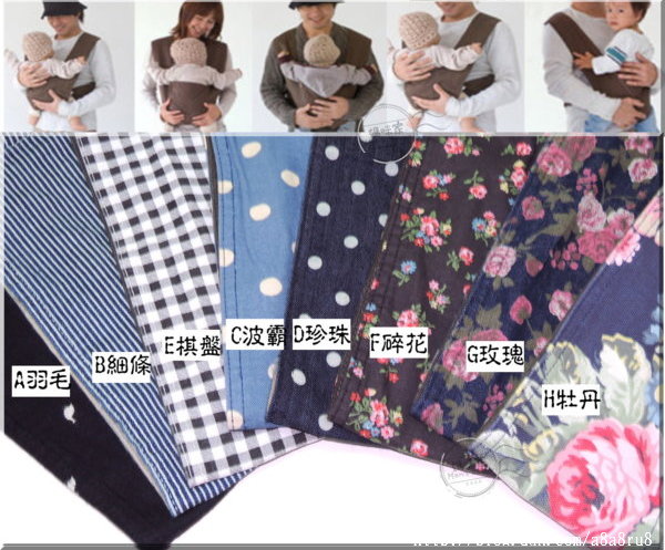 【H050】H50簡易背巾 LBB 寬版 減壓 X型 背巾 背帶 揹帶 方便攜帶 好收納 新型 魔鬼氈 固定 尺寸~如圖三 款式~如圖二/A羽毛、B細條、C波霸、D珍珠、E棋盤、F碎花、G玫瑰、牡丹 單價~背巾1件~180元(簡單透明袋包裝)