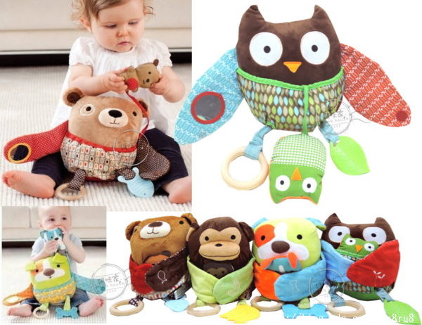 ◆材質~毛絨、不織布、綿布 填充物:聚酯纖維綿 ◆左手響紙夾層+右手安全鏡設計,利用聲響、視覺,刺激寶寶手指末端神經及滿足視覺感官好奇心! ◆可愛母子玩偶設計,寶寶長大了還可當抱偶、擺設喔! ◆清洗方式:因內有鈴鐺/BB器/響紙/安全鏡設計,建議局部洗滌晾乾或濕布擦淨即可! ◆可綁掛在推車、嬰兒床、安全座椅使用,可爱的動物造型,色彩鲜艷,動一動就會聽到鈴鐺聲響,刺激寶寶聲感! ◆視覺/觸覺神經的發育~可以安撫嬰兒的情緒~發展嬰兒的視覺追蹤能力~可發展嬰兒豐富的想像力~激發嬰兒的好奇心和興趣。 |