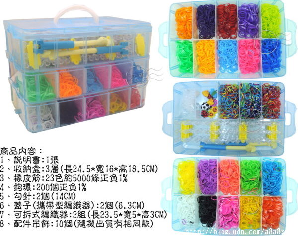 上一則: 媽咪家【N029】N29單色橡皮筋 編織配件 橡皮圈 彩虹編織 補充包 創意 DIY 編織 益智 包/600條下一則: 媽咪家【N027】N27收納盒編織器 手工 彩虹編織 橡皮筋 手鍊 手環 創意 DIY 益智 套件組